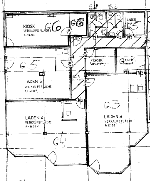 1. Ladenlokal G3 - ca. 62,52 m² - Lagerraum ca. 8,54 m², Kellerraum