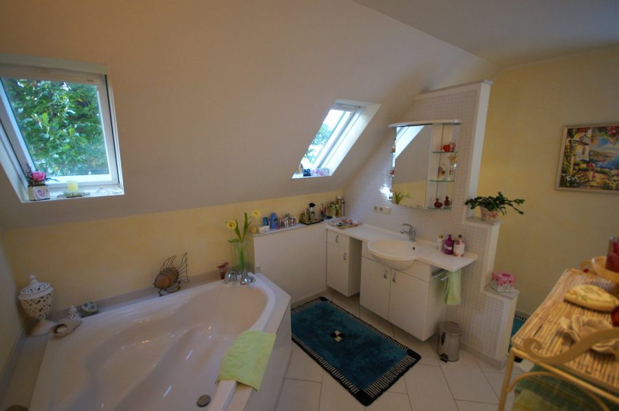 Das Haus ist in einem sehr gepflegten Allgemeinzustand. Im Erdgeschoss sind isolierverglaste Kunststofffenster mit Rollläden, im Obergeschoss isolierverglaste Kunststoff- und Alufenster verbaut. Die vorhandene Küche kann gerne vom neuen Eigentümer übernommen werden. Das Dachgeschoss bietet weiteres Ausbaupotential für 1 bis 2 Zimmer.