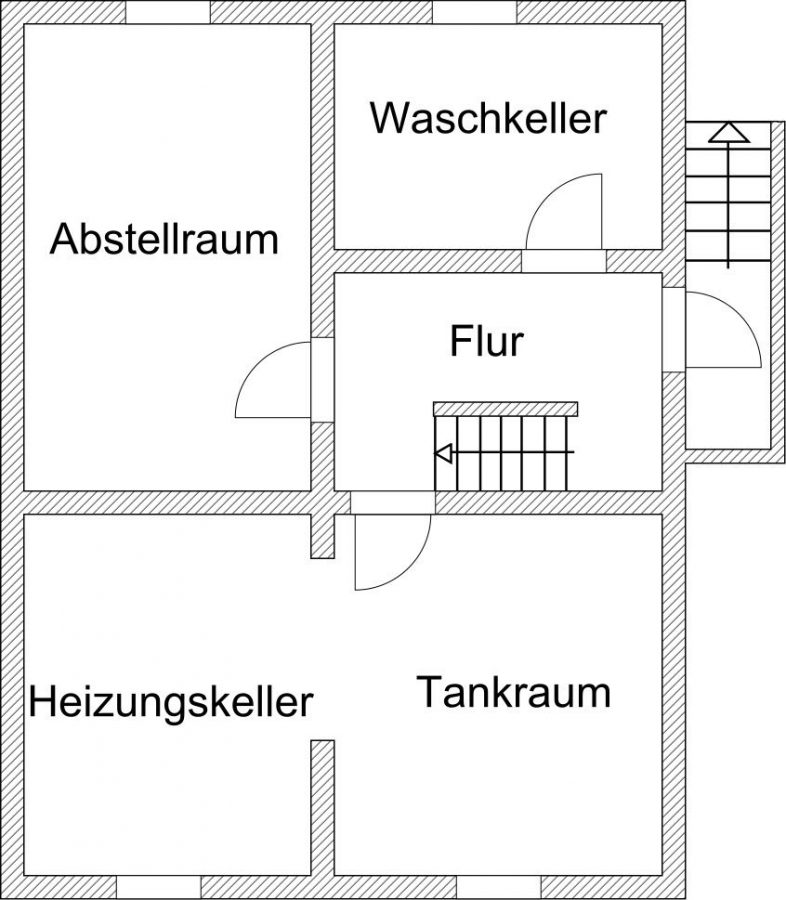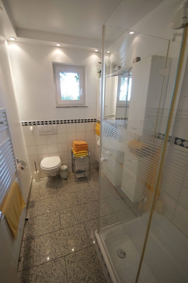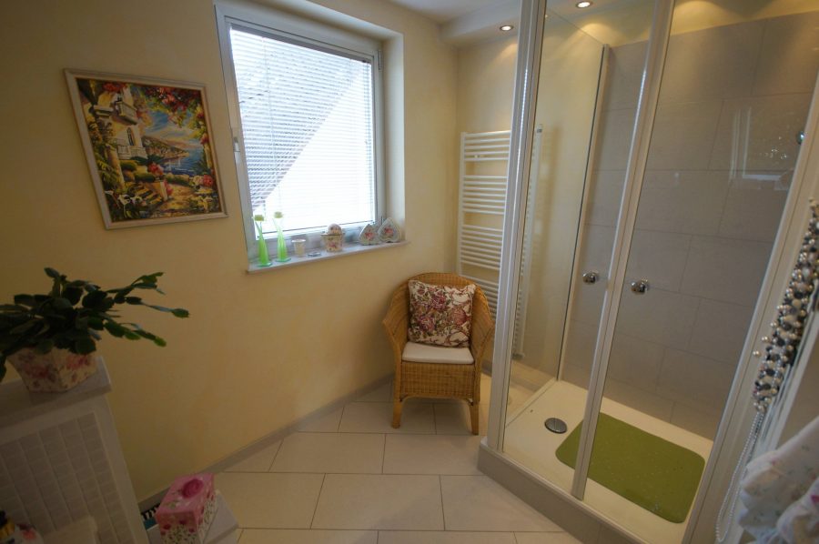 Im Erdgeschoss befinden sich neben der großzügigen Wohnküche ein geräumiges Wohnzimmer und ein Duschbad mit Fenster. Im Obergeschoss gibt es 3 Schlafzimmer und ein modernes Fensterbad mit Eckbadewanne und Dusche, welches im Jahr 2002 komplett neu hergestellt wurde. Der Keller des Hauses besteht aus 4 Räumen: Waschkeller, Kellerabstellraum, Tankraum und Heizungskeller. Das Gebäude wird durch eine Buderus Ölzentralheizung mit Warmwasserbereitung beheizt.