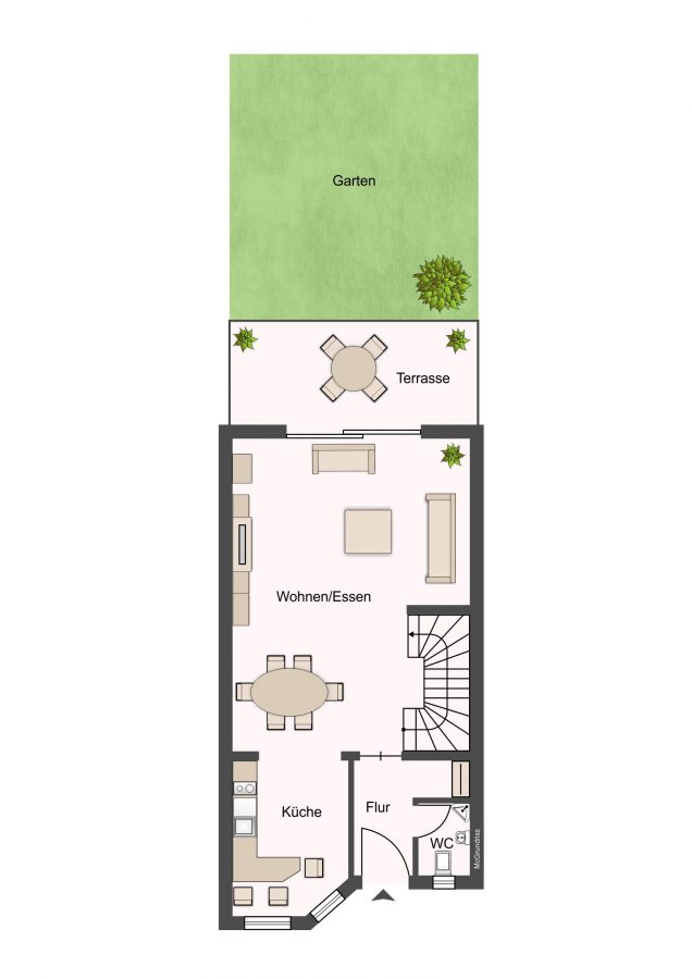 - rückwärtig keine direkte nachbarschaftliche Bebauung
