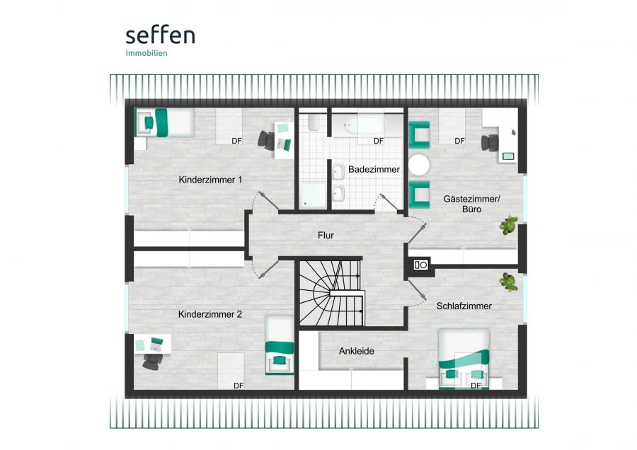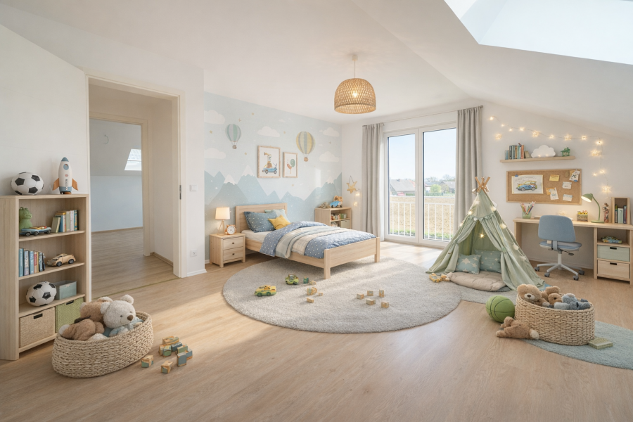 - zwei helle Kinderzimmer + flexibles Gäste-/Arbeitszimmer