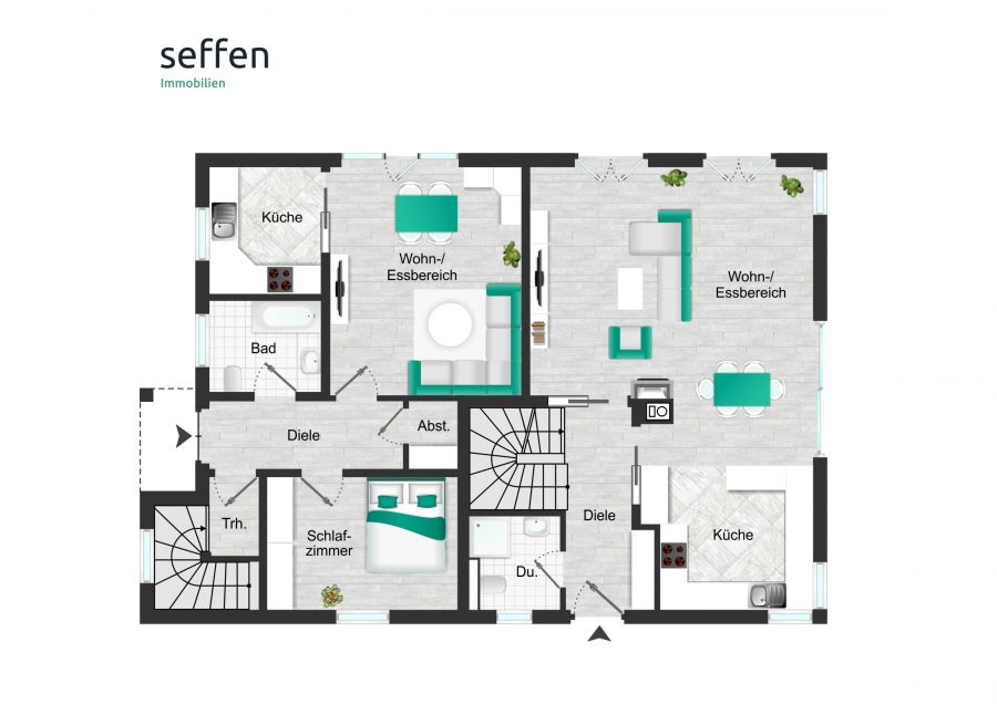 - zwei zentrale Lüftungsanlage mit Wärmerückgewinnung für optimales Raumklima