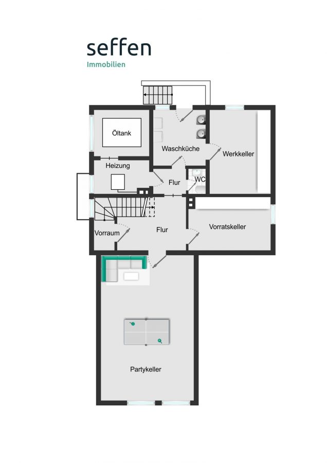 - großer beheizbarer Partykeller, 3 weitere Kellerräume und separates WC im Untergeschoss