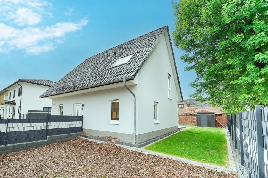 Dieses moderne Niedrigenergiehaus bietet Ihnen die Möglichkeit, auch in Zeiten von steigenden Energie- und Baukosten, zu kalkulierbaren Ausgaben ein Eigenheim zu erwerben! Das Haus befindet sich in einem tadellosen Zustand und weist keine Bauschäden auf. Einzig die Außenanlagen (Pflasterung) vor dem Haus müssen noch von dem neuen Eigentümer fertiggestellt werden.