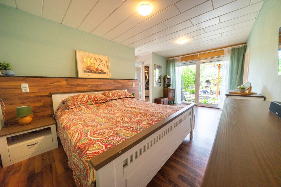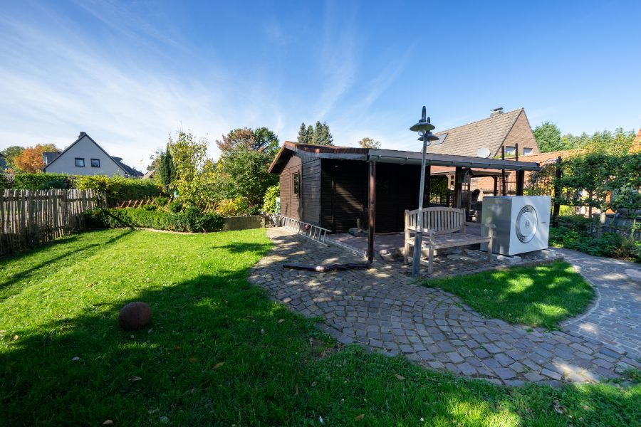 Das sonnige Südgrundstück ist liebevoll angelegt und lädt zum Verweilen ein. Die große Terrasse mit Teich und angrenzender Pergola bietet eine perfekte Sitzecke für entspannte Stunden im Freien. Ein echtes Highlight für Gartenliebhaber ist das hochwertige Gartenhaus, das zusätzlichen Stauraum oder Platz für Hobby und Freizeit bietet. Die Bewässerung der vielen Pflanzen kann bequem über die integrierte 5.000 l Regenwasserzisterne erfolgen. Ein Großteil des Regenwassers von der Dachentwässerung wird in die Zisterne im Garten geleitet, die über ein Hauswasserwerk betrieben wird.