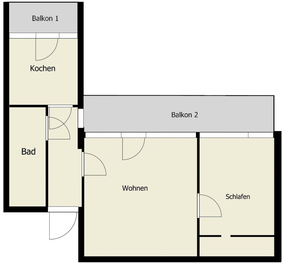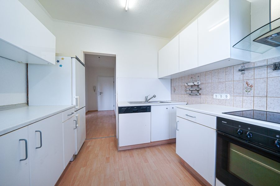 Die Wohnung bietet auf 60 m² eine durchdachte Raumaufteilung. Beim Betreten der Wohnung gelangen Sie zunächst in die Diele, von der aus Sie direkt auf der linken Seite das Duschbad erreichen. Weiter geradeaus befindet sich die Küche mit einer im Kaufpreis enthaltenden Einbauküche. Über die Küche gelangen Sie direkt zu einem der 2 Balkone.