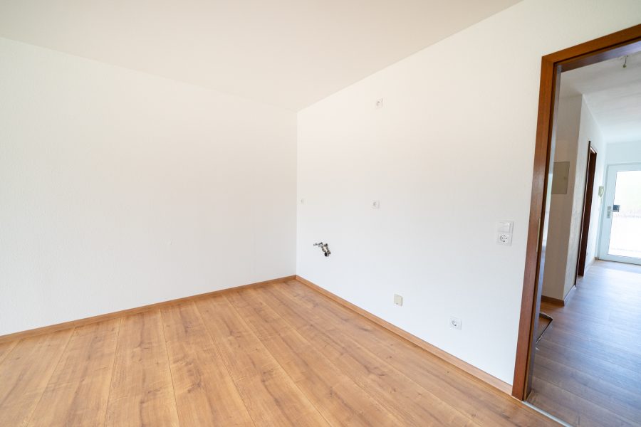 Die offene Küche bietet Platz für Ihre individuelle Gestaltung. Das Schlafzimmer ist hell und geräumig und bietet ausreichend Platz.