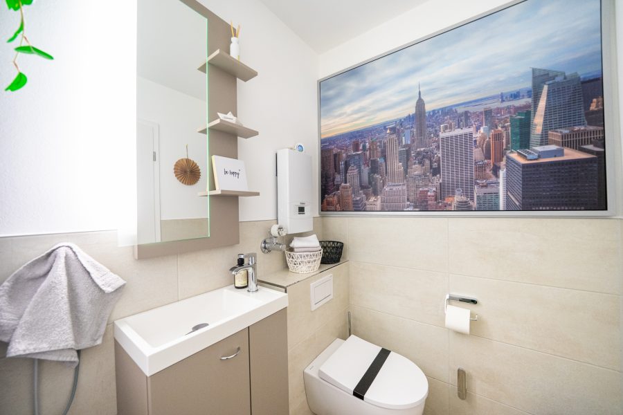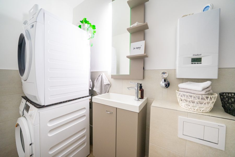 - modernes Gäste-WC mit Waschtisch & Anschluss für Waschmaschine & Trockner
