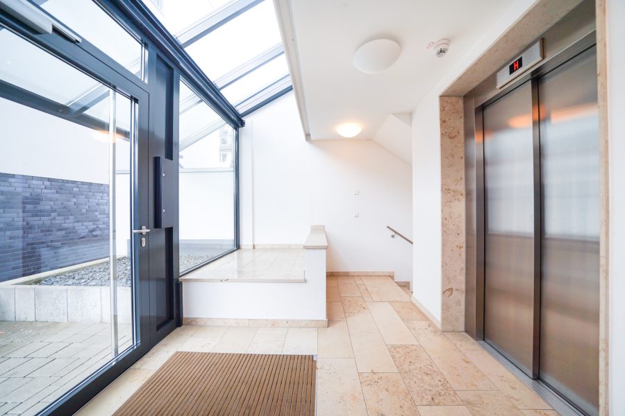 Der gepflegte und helle Hauseingangsbereich führt Sie über einen kleinen Treppenabsatz direkt in Ihr Reich auf der Hochparterre.