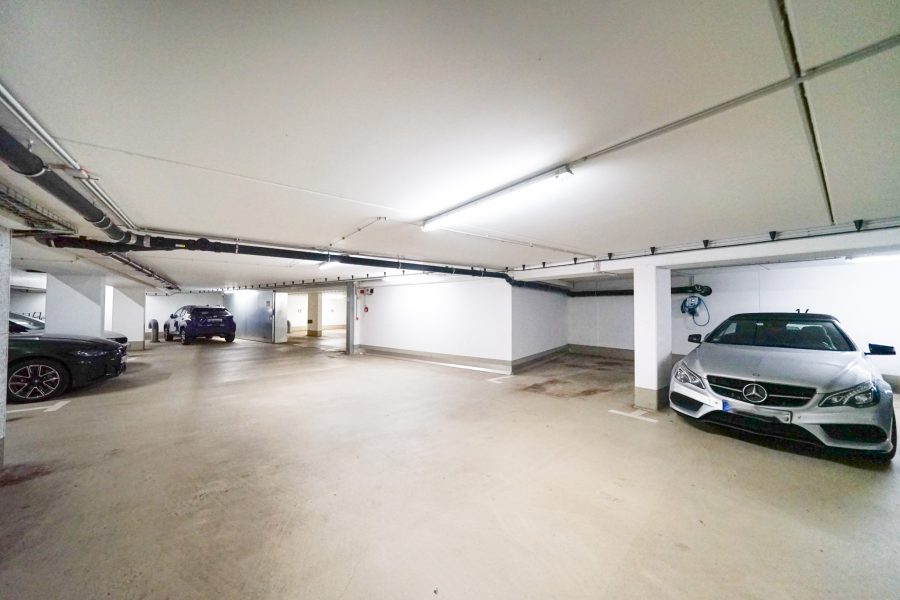 Die Wohnung bietet einen großen Tiefgaragenstellplatz, der für 25.000 € zusätzlich zu erwerben ist. Dieser ist bequem mit dem Personenaufzug erreichbar. Ihre Räumlichkeiten im Untergeschoss sowie Ihr Stellplatz befinden sich in unmittelbarer Nähe zur Wohneinheit. Außerdem stehen Ihnen mehrere Fahrradräume zur Verfügung, die ebenfalls kurze Wege garantieren.