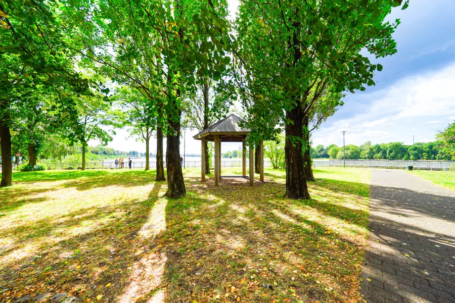 Die unmittelbare Rheinlage eröffnet vielfältige Möglichkeiten zur Freizeitgestaltung: Spaziergänge entlang des Ufers, Radfahren oder Joggen – die Umgebung ist ideal für aktive Erholung. Zusätzlich sorgen Parks und Grünflächen in der Nähe für Entspannung und einen Ausgleich zum urbanen Alltag.